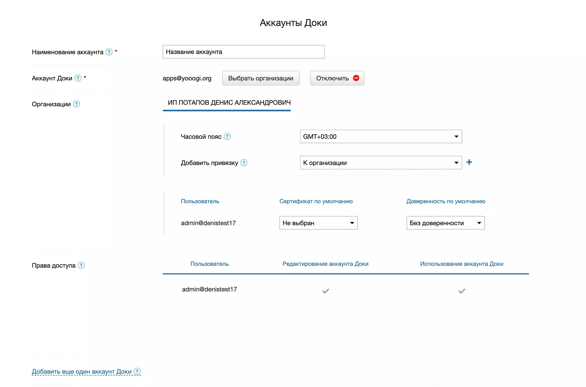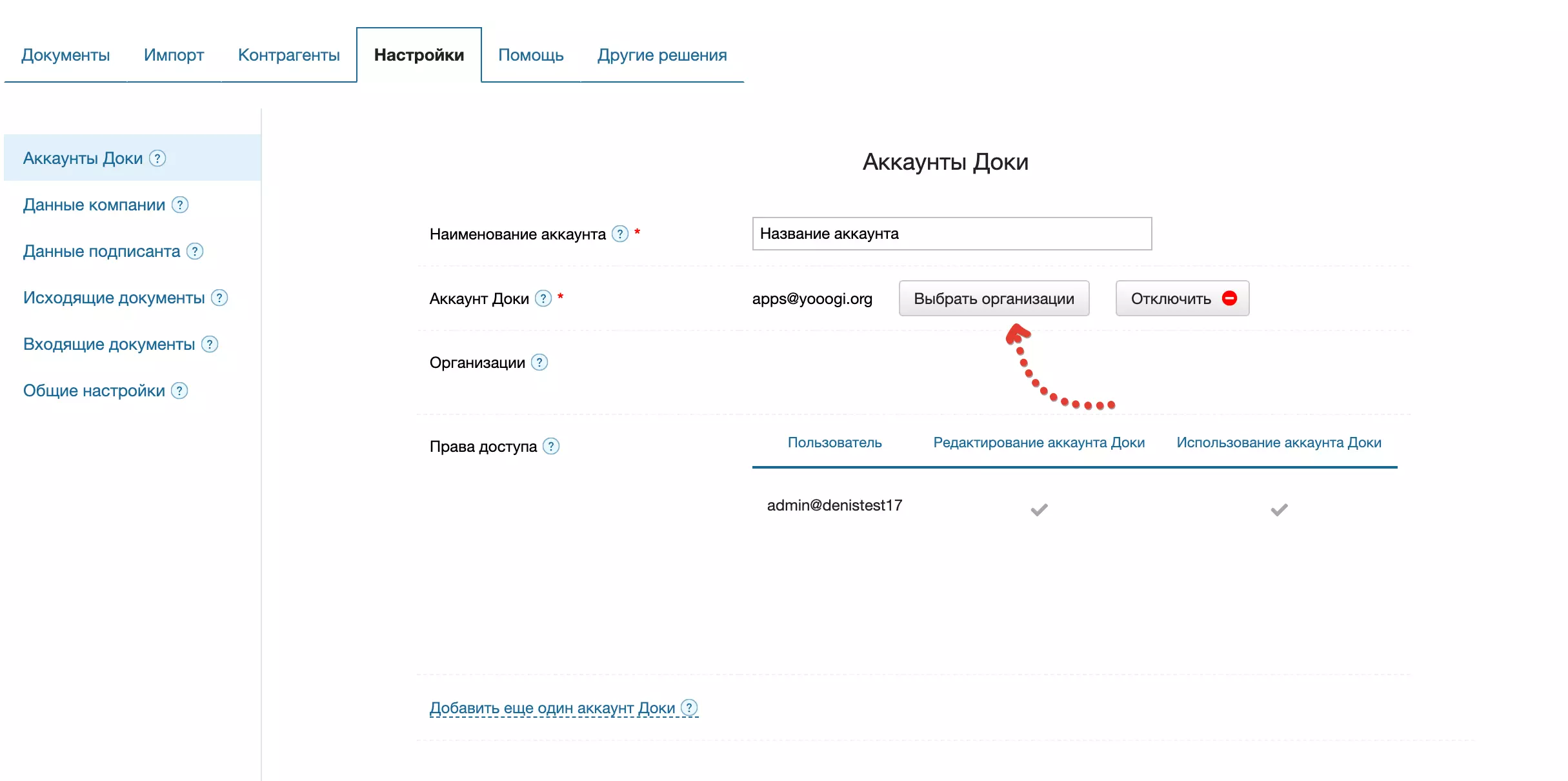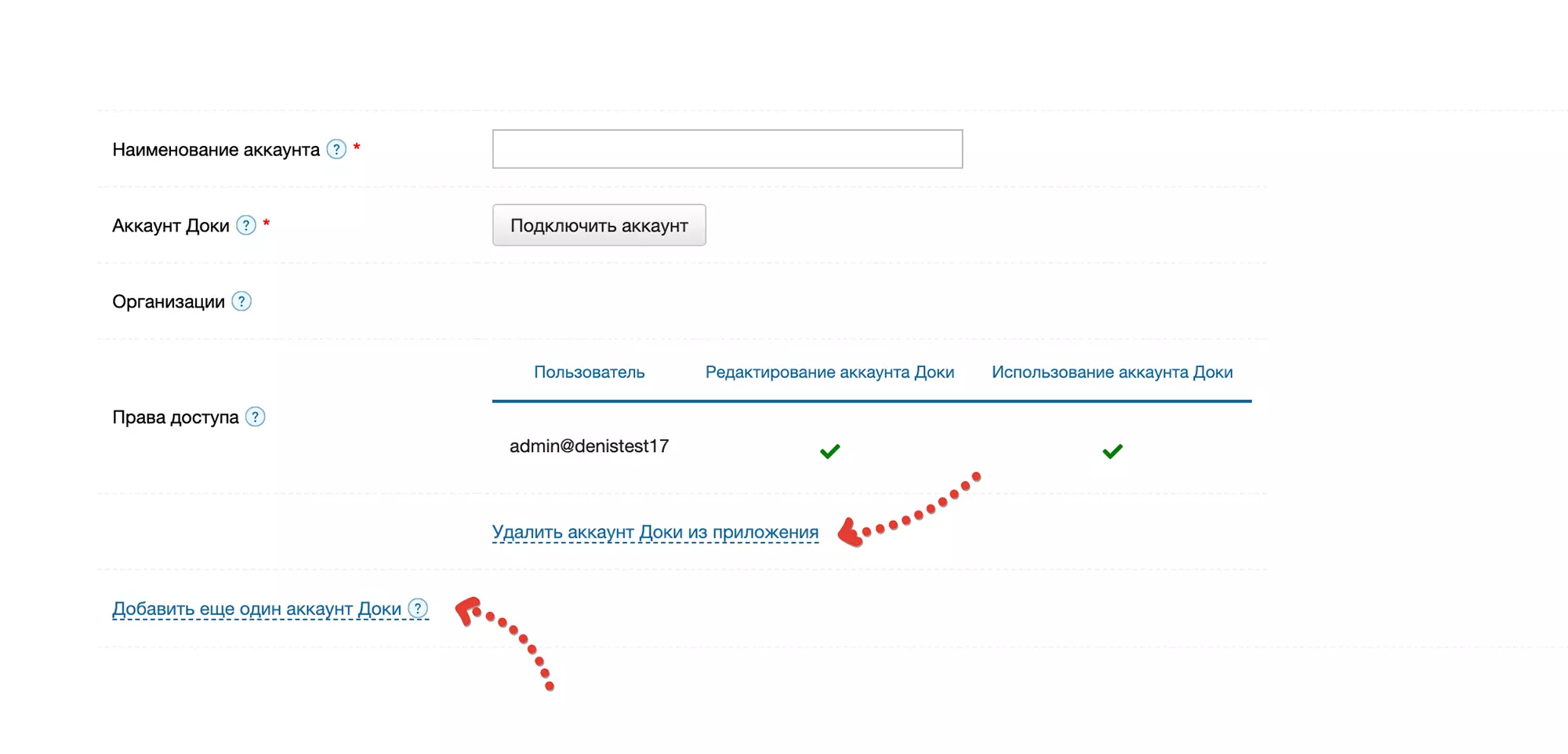 Для этого нажмите на ссылку Добавить еще один аккаунт Доки и проведите настройки согласно инструкции выше