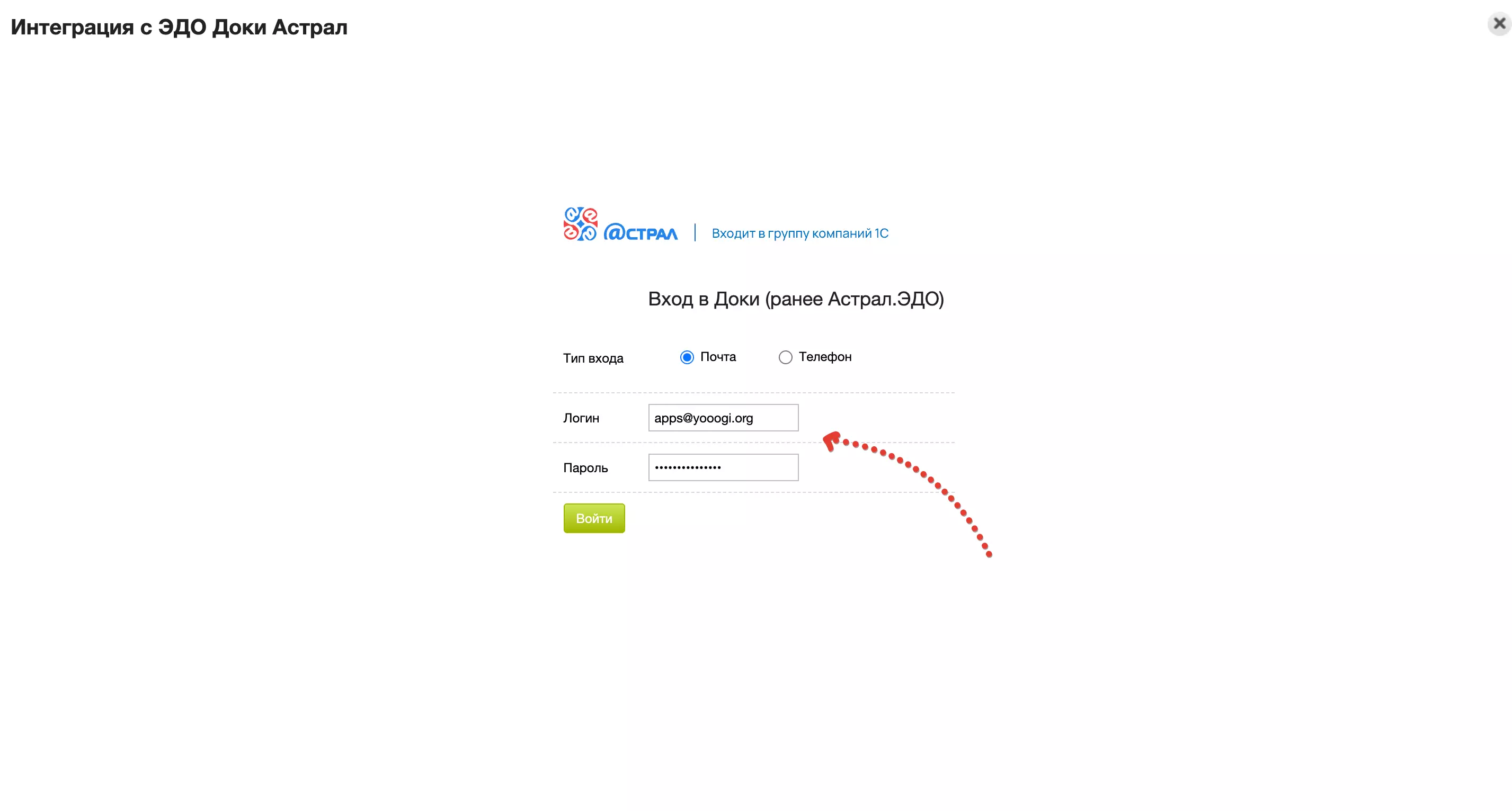 В виджете уже предустановлены данные в соответствии с настройками аккаунтами Доки и настройкам исходящих документов