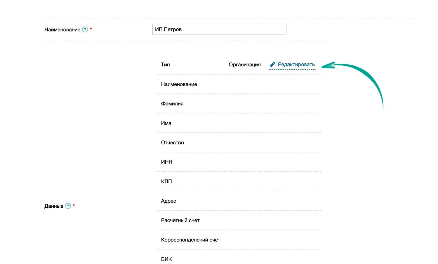 Дополнительно редактируются следующие данные: