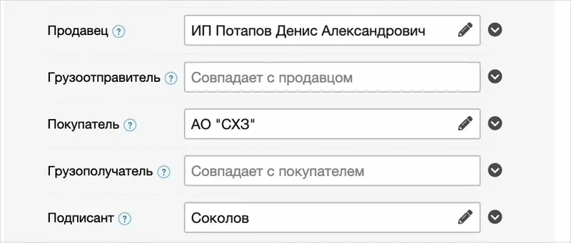 Отредактировать данные грузотправителя можно, нажав на иконку