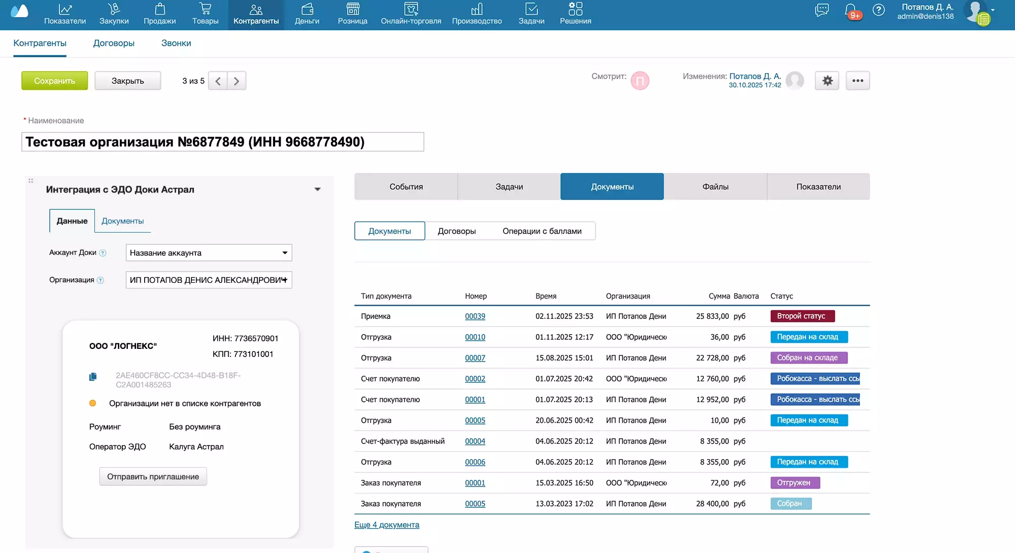 Вы можете управлять контрагентом и документооборотом с ним в Доки из карточки контрагента МойСклад