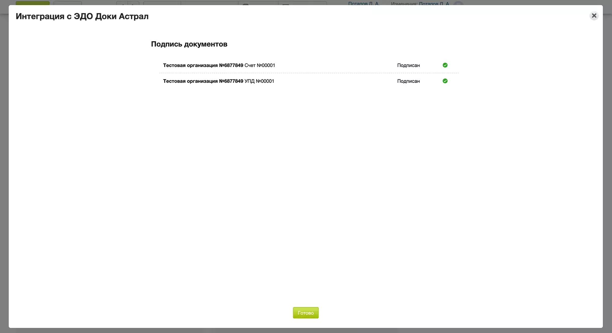 Интеграция готова к использованию!